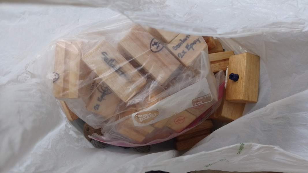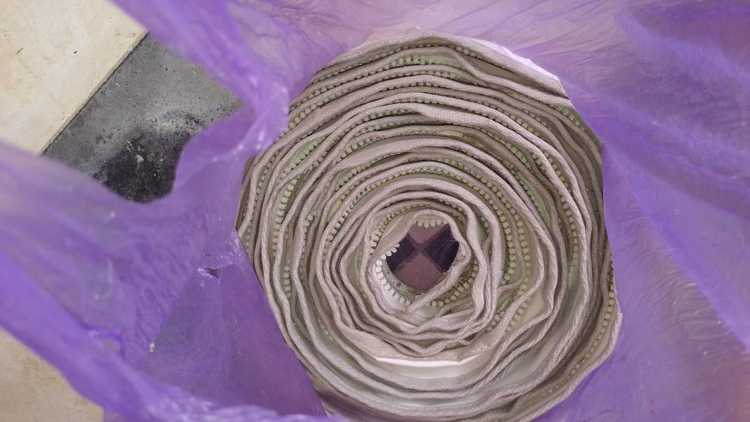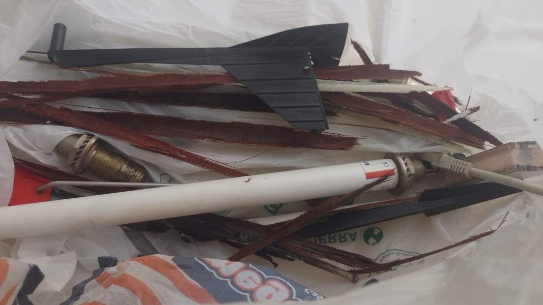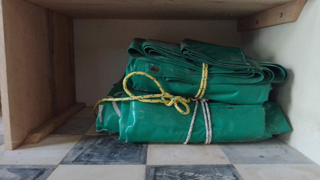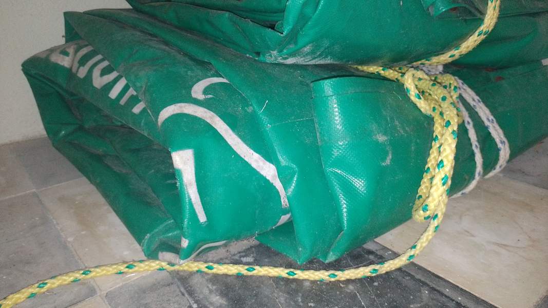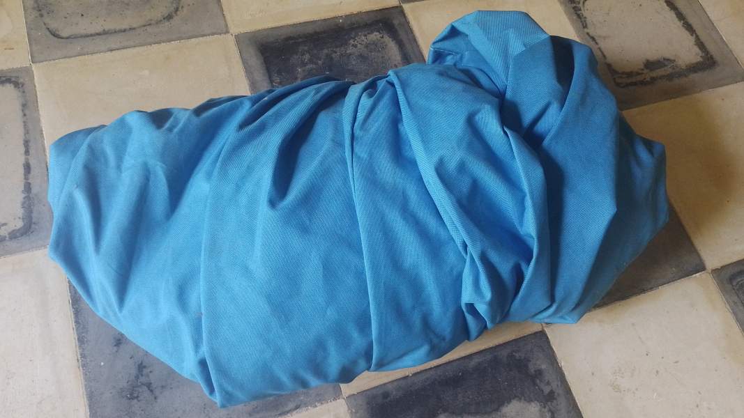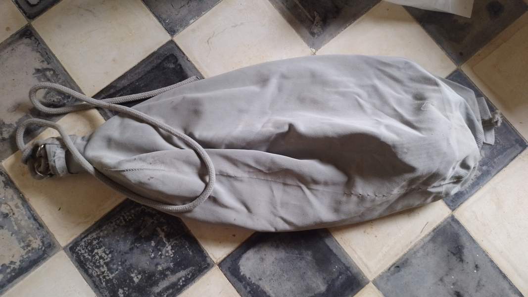 blue sail bag, holes from rats
