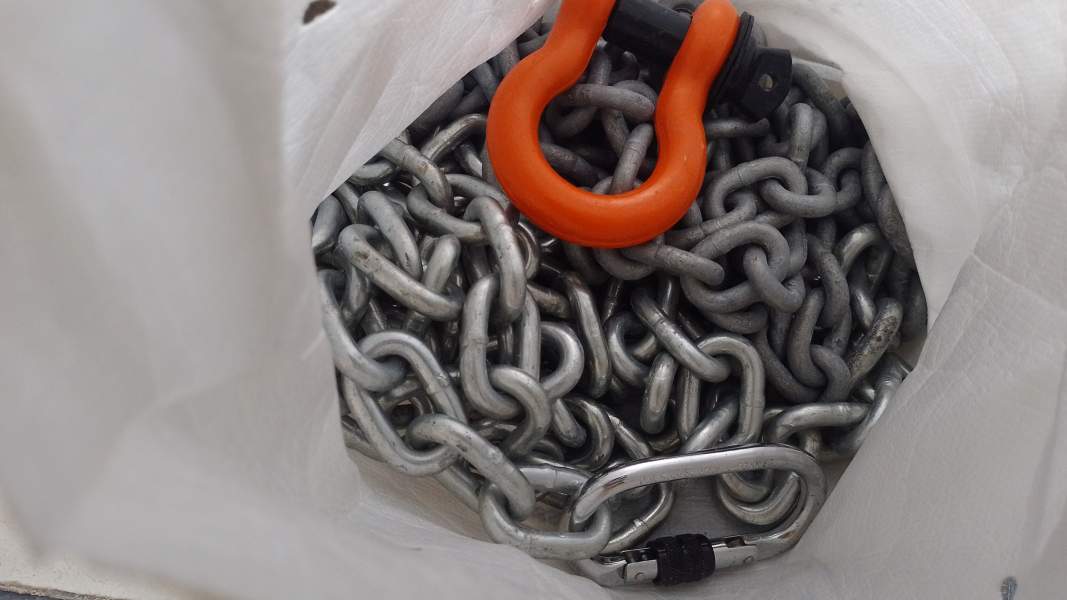 2x anchor chain without shackles, 1x SS, 1x galvanized, bag ripped